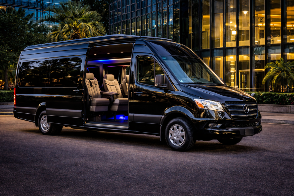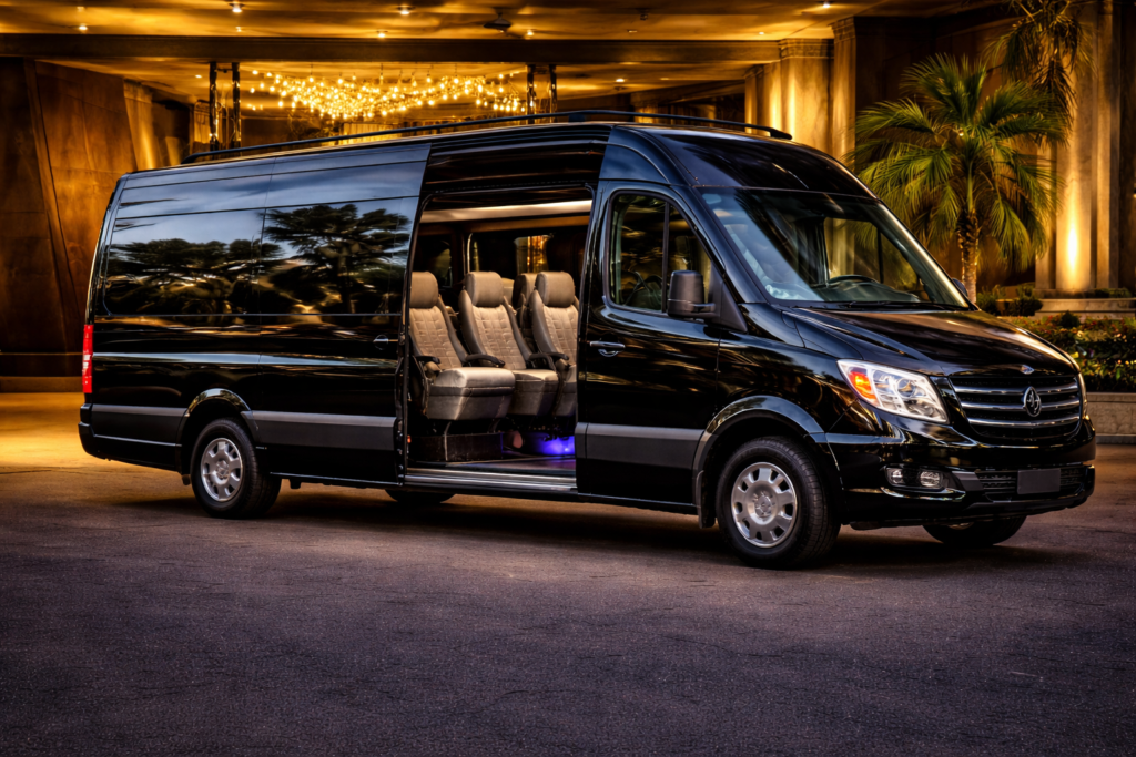The 13 Passenger Jet Sprinter offers premium comfort, space, and luxury for group travel. With plush leather seating, ample legroom, climate control, and a refined interior, it is ideal for airport transfers, corporate travel, group tours, and special events. Designed for a smooth and reliable ride, it delivers a first-class travel experience for every passenger.