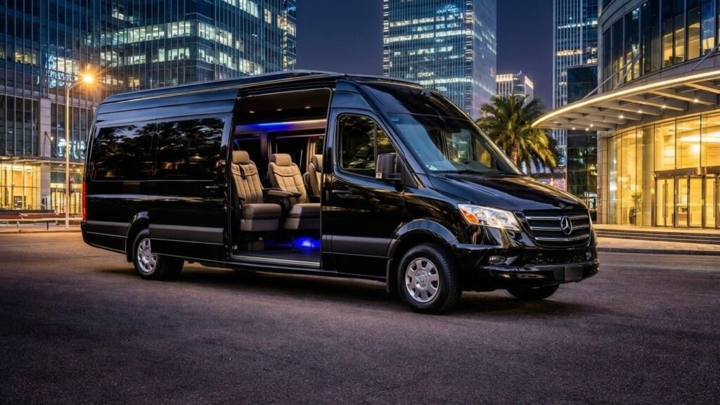 The 9 Passenger Jet Sprinter is a luxury van designed for comfort, style, and reliability. It features spacious leather seating, a smooth ride, climate control, and a premium interior, making it ideal for airport transfers, corporate travel, family trips, and VIP transportation. Perfect for those who want a safe, elegant, and comfortable travel experience.